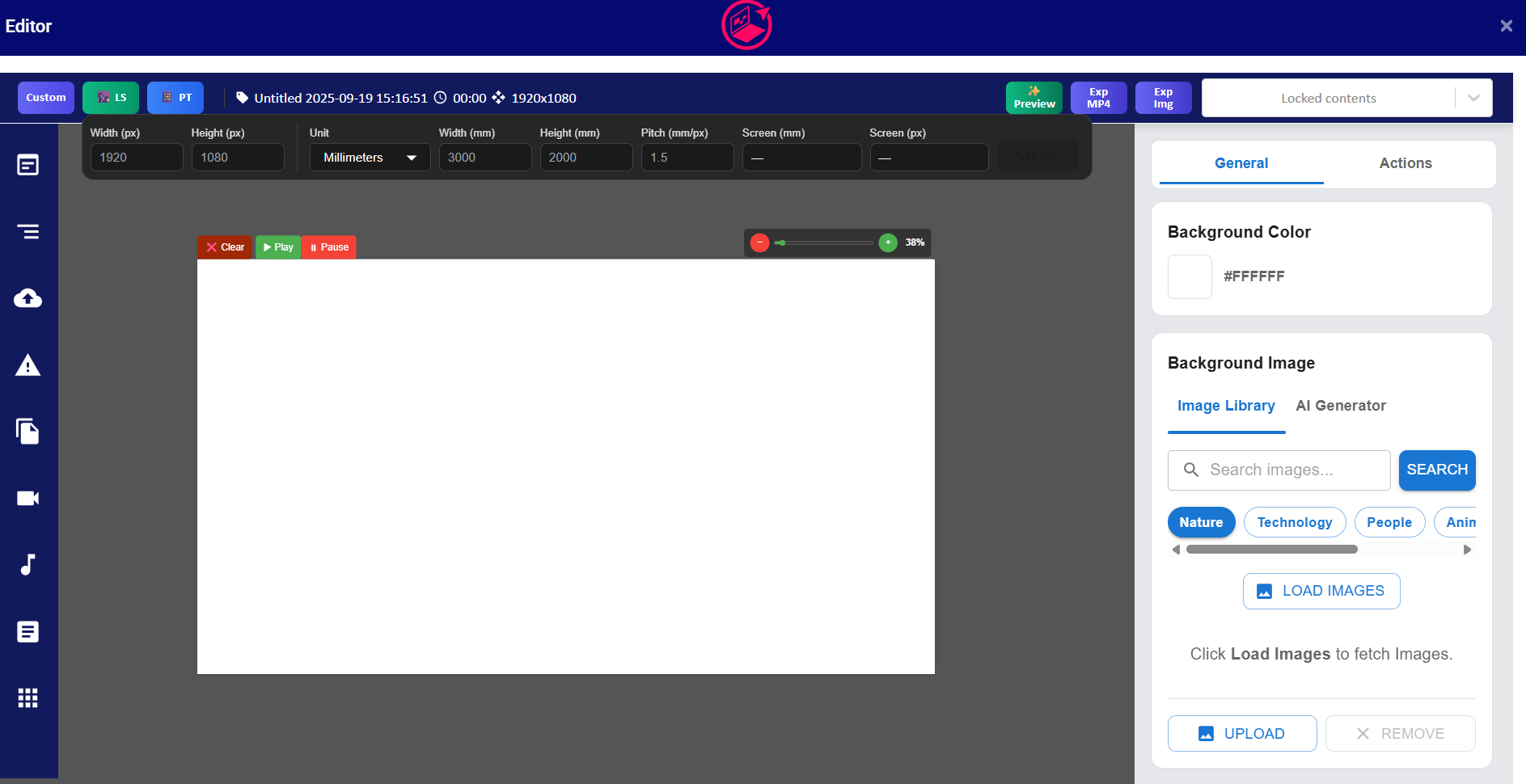 Bij de start kunt u een vrije ruimte perfect aanmaken voor gebruik op LED schermen met het ingeven van de breedte, de hoogte en de pitch..
